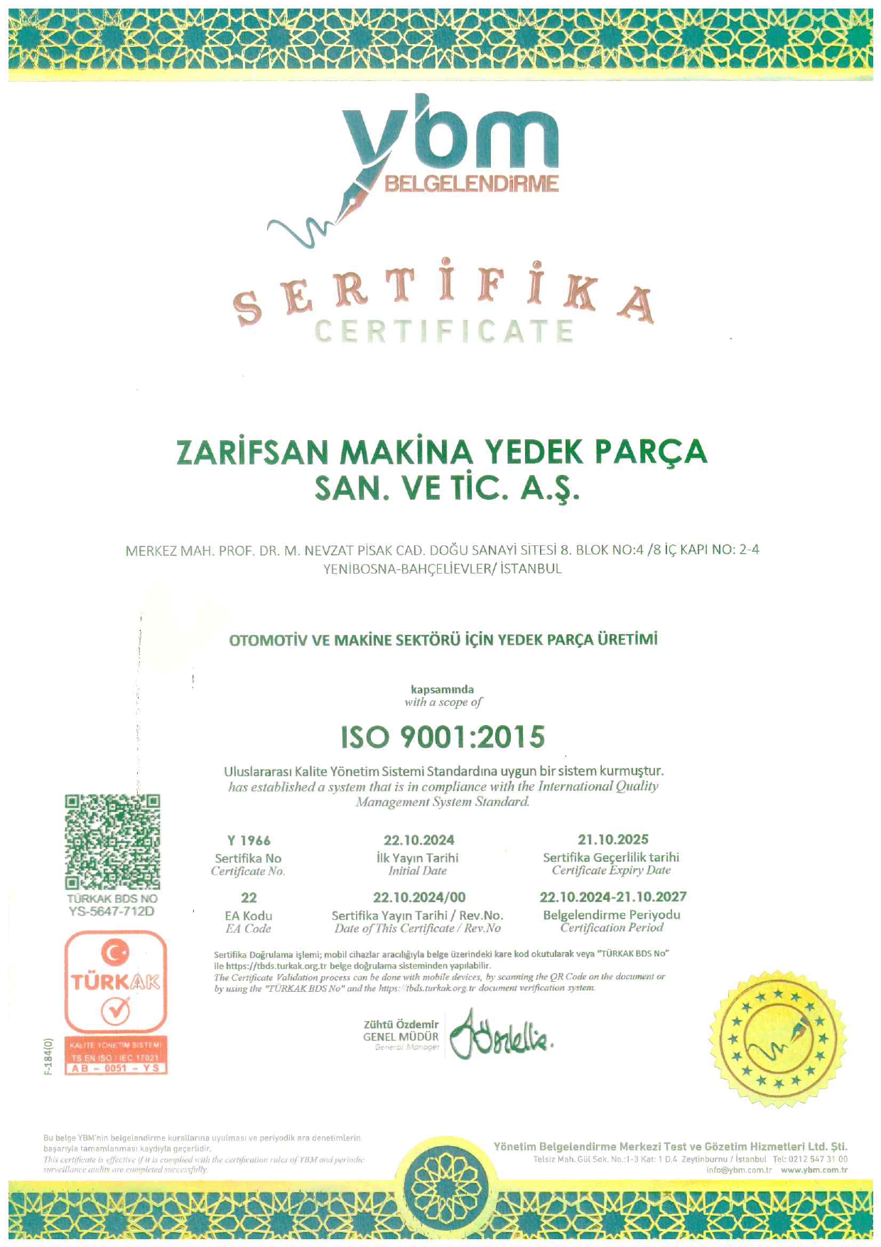ISO 9001:2015 Onay Tarihi: 22.10.2024 Geçerlilik Süresi: 21.10.2025